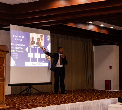 La série de présentations a été clôturée par le Chef du Service de la Promotion de la Bonne Gouvernance des Finances Publiques, M. Jean Arnaud BARAKA adressant un message sensibilisateur à l’endroit des différents acteurs, leur expliquant les principes de la bonne gouvernance appliqués dans l’exécution de recettes publiques suivis de l’inventaire des fautes de gestion en matière de recettes passibles de sanction devant le CDBF.