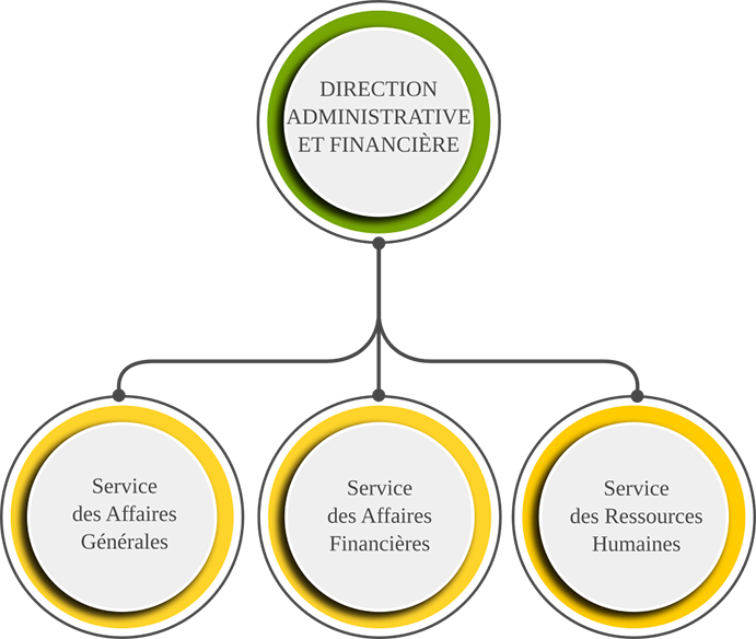La Direction Administrative et Financière, est chargée d’assurer la gestion des ressources humaines, des affaires administratives, des affaires financières et des logistiques et patrimoine du CDBF. Placée sous l’autorité du Directeur Administratif et Financier, elle est composée de :