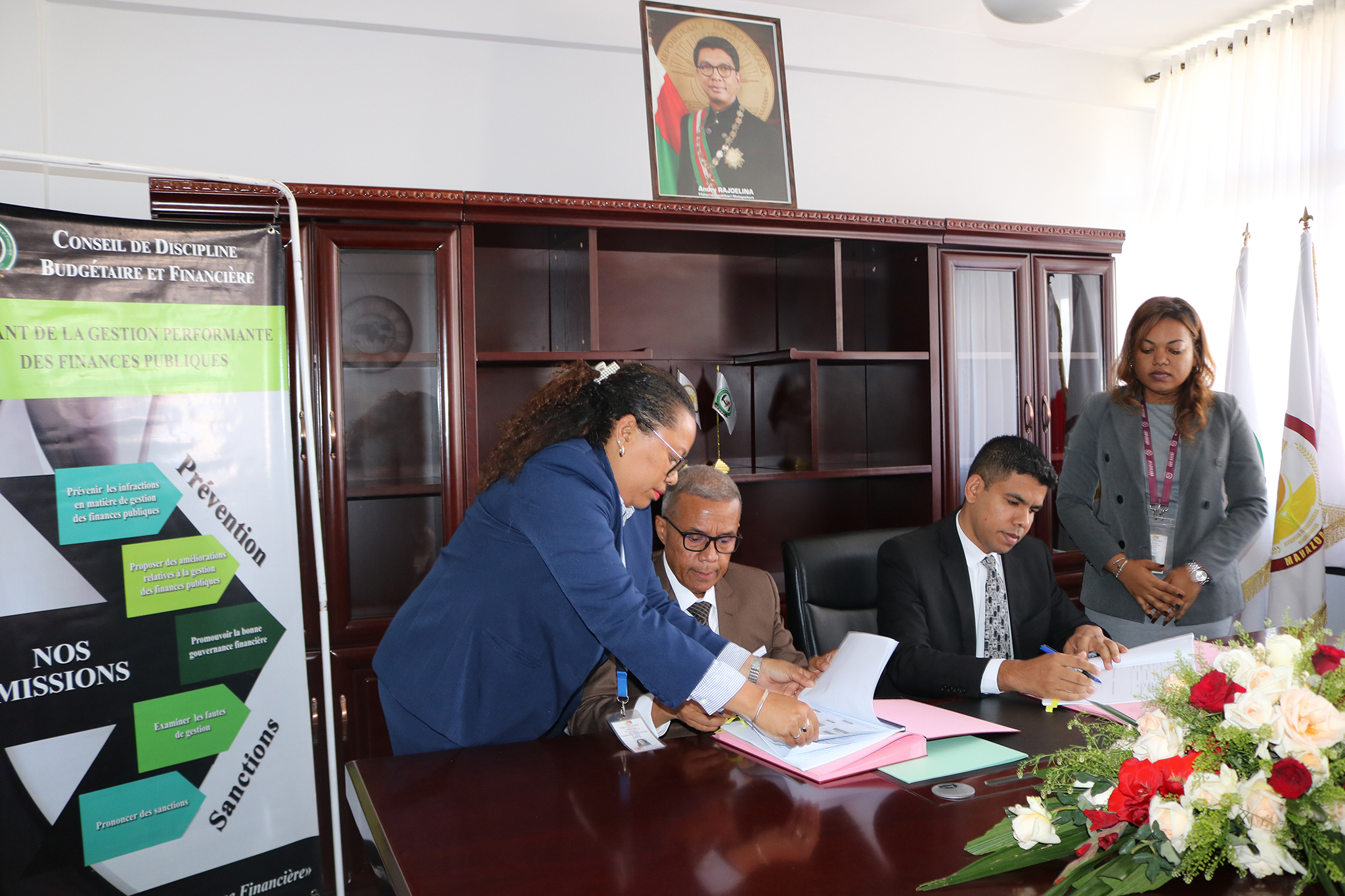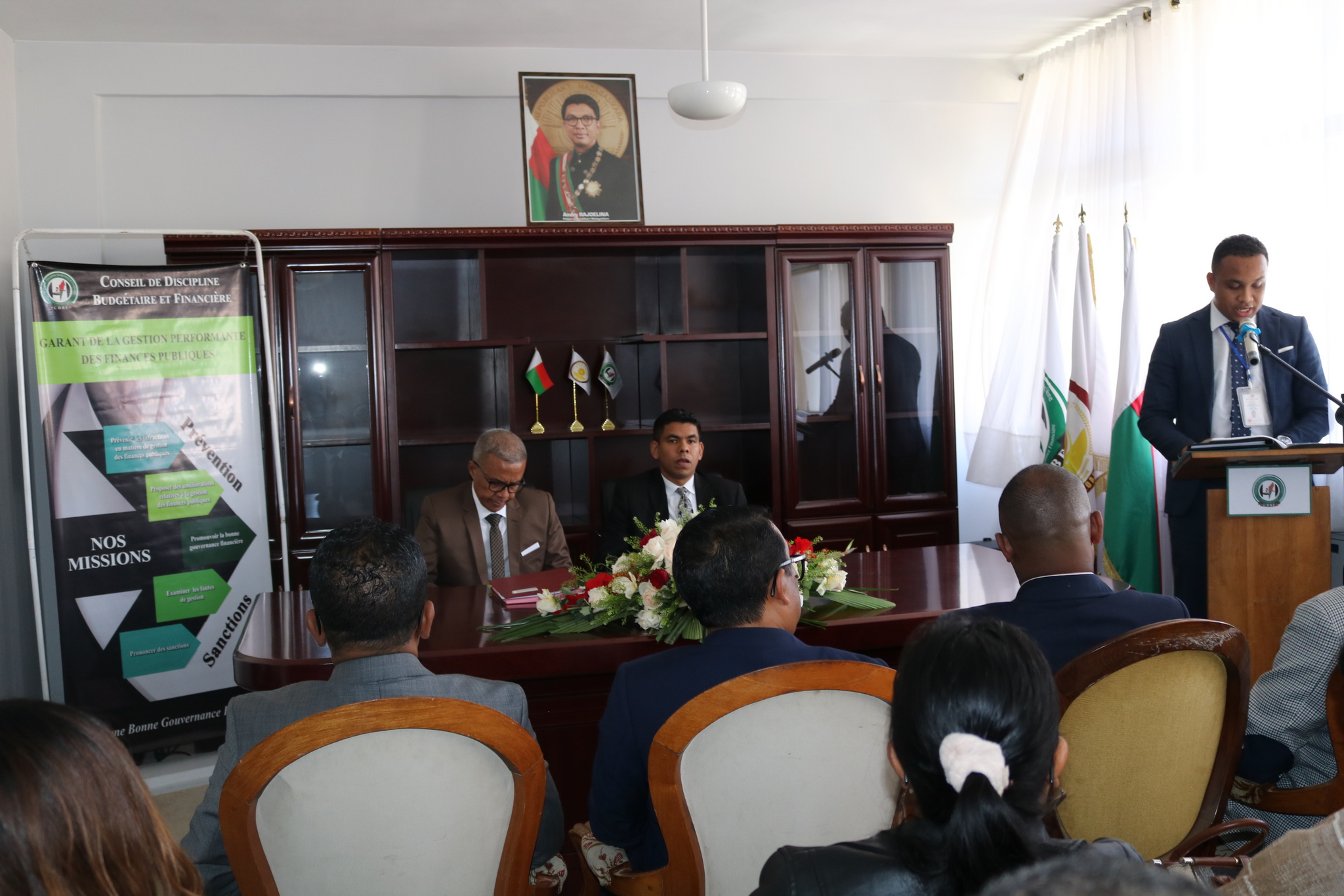 La cérémonie officielle de passation de service entre le Directeur Général sortant et le Directeur Général entrant du Conseil de Discipline Budgétaire et Financière s’est tenue dans l’après-midi du lundi 5 mai 2025 à son siège sis au 3e étage de l’immeuble maison des produits 67 Ha. Cette passation fait suite à la décision prise en Conseil des ministres en date du mercredi 30 avril 2025, abrogeant le décret n° 2024-266 du 21 février 2024 et nommant Monsieur OLAF Francis, jusque-là Directeur Administratif et Financier (DAF) du CDBF, en qualité de nouveau Directeur Général de l’organisme.