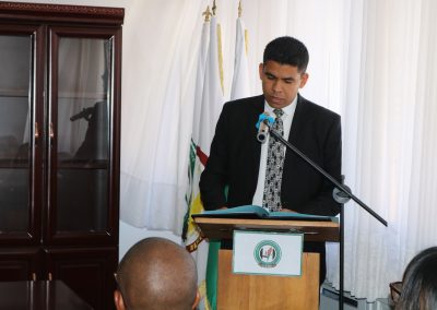 La cérémonie, sobre et empreinte de solennité, a été ponctuée par plusieurs allocutions. Le Président du CDBF a ouvert les discours en retraçant brièvement l’historique de l’institution, mettant en lumière son rôle fondamental dans la régulation de la discipline budgétaire et financière au sein de l’administration publique. Le Directeur Général sortant, dans son intervention, a exprimé sa reconnaissance tout en formulant ses vœux de succès à son successeur. À son tour, Monsieur OLAF Francis, le nouveau Directeur Général, a exprimé sa gratitude pour la confiance placée en lui, affirmant sa détermination à poursuivre les efforts engagés pour garantir l’intégrité, la transparence et la rigueur dans la gestion des finances publiques. Enfin, le Secrétaire Général du Gouvernement, qui a honoré la cérémonie de sa présence, a souligné l’importance stratégique de la fonction de Directeur Général au sein du CDBF. Il a également insisté sur la nécessité d’une vigilance constante dans la gestion des ressources publiques et a transmis les chaleureuses félicitations du Premier ministre, Chef du Gouvernement, à Monsieur OLAF Francis.